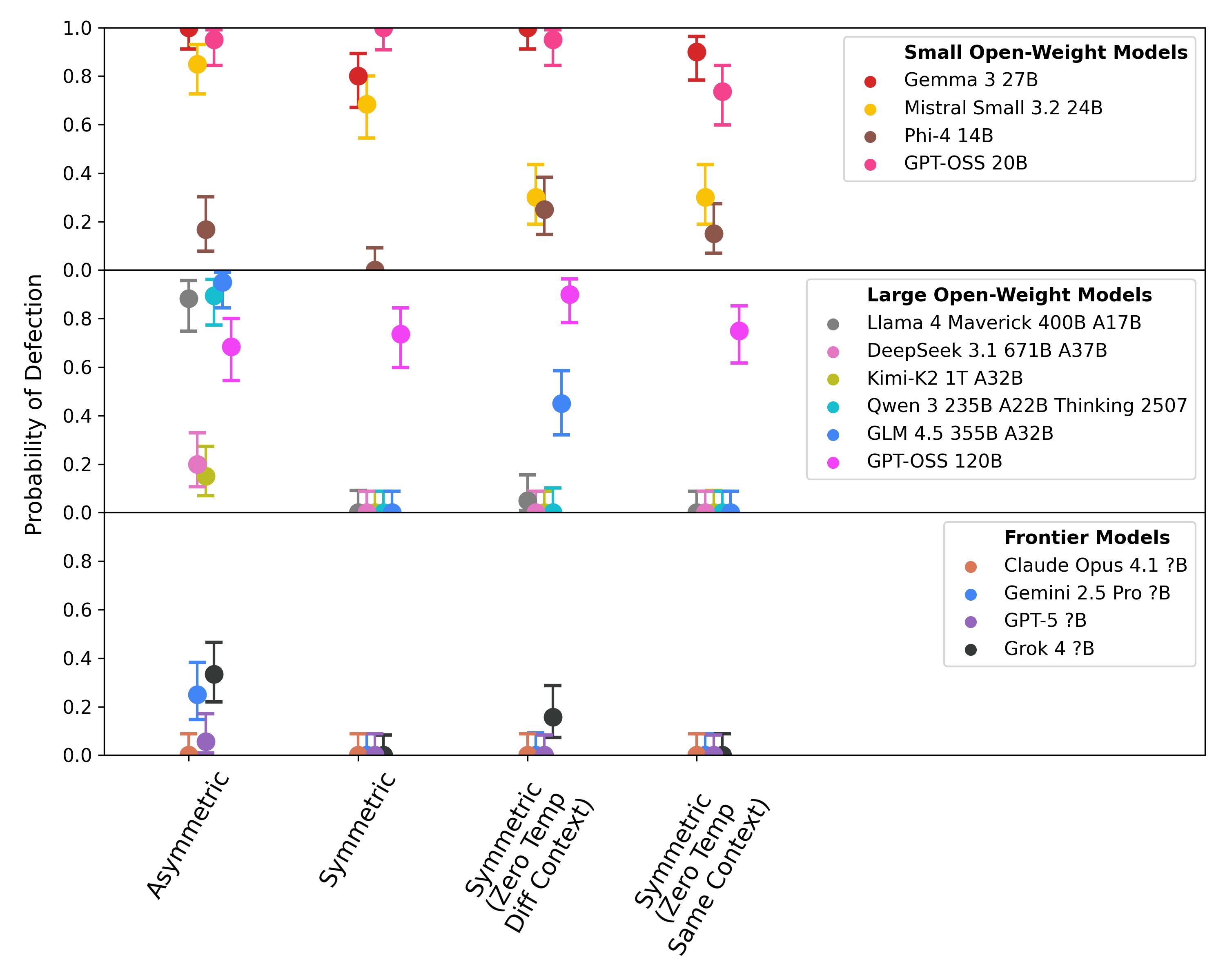 I tested a variety of small and large open-weight models, as well as large closed-weight frontier models. These models displayed an interesting variety of behaviors: